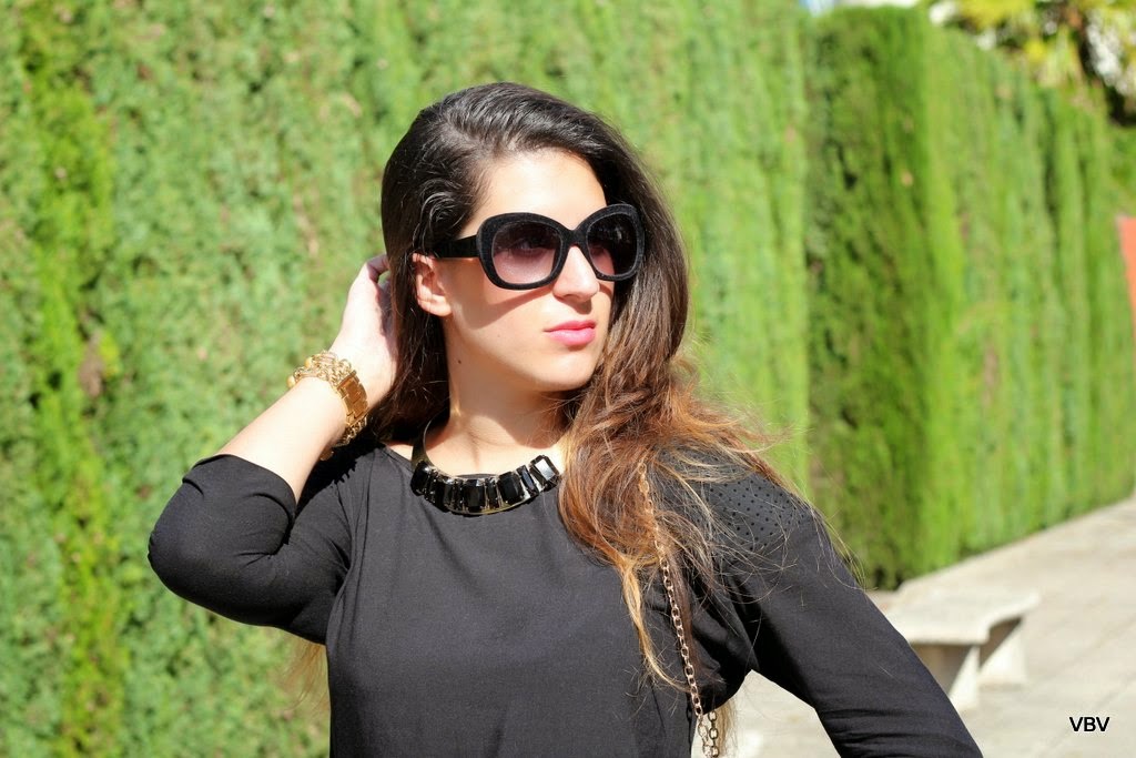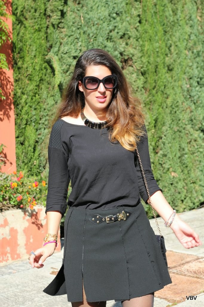 Tenía muchísimas ganas de estrenar mi última compra de rebajas. esta falda negra de Zara con un poco de vuelo y adornada con unas hebillas doradas que le restan seriedad, lo malo es que la tela es muy gruesa y no creo que la pueda utilizar más este año, a no ser que vuelvan a bajar las temperaturas. Siguiendo la línea de la falda elegí el resto de prendas en negro y dorado, es una combinación que me encanta y que queda muy elegante.