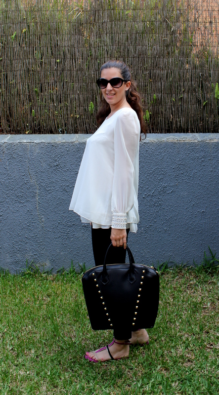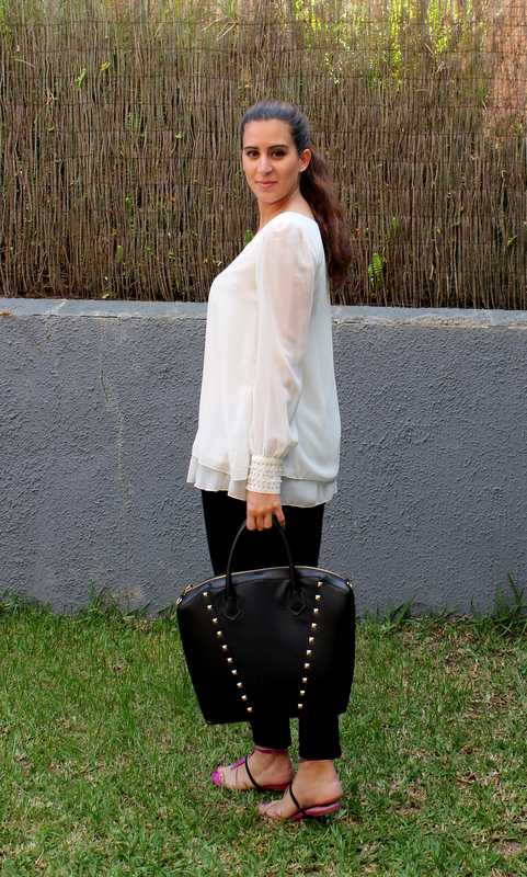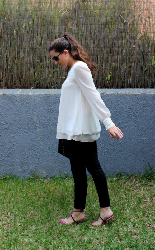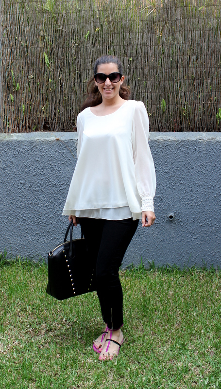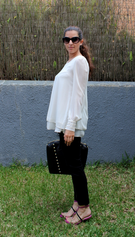 El sábado después de celebrar las Bodas de Oro de los abuelos de mi novio, me fui con mis amigas a cenar al McDonald y me decidí por un outfits en blanco y negro con un toque de fucsia en las sandalias. La camisa la he podido usar muy poquito pero como han vuelto a bajar las temperaturas es el momento de aprovecharla al máximo y además tenía muchísimas ganas de enseñaros mi última adquisición en cuanto a bolsos (no puedo resistirme), es de H&M y lo encontré de rebajas a tan solo 15 euros, vamos que no podía dejarlo en la tienda y me viene perfecto tanto para la universidad como para salir.