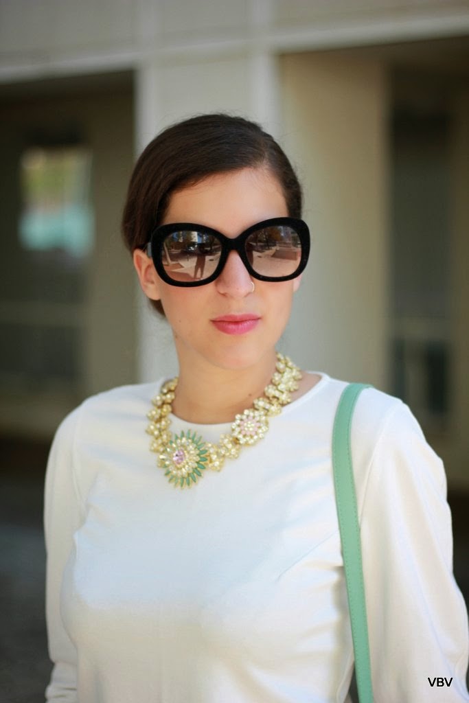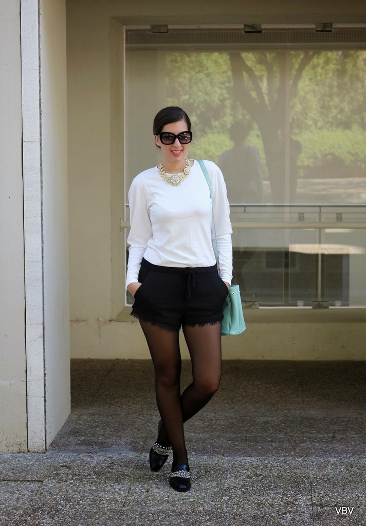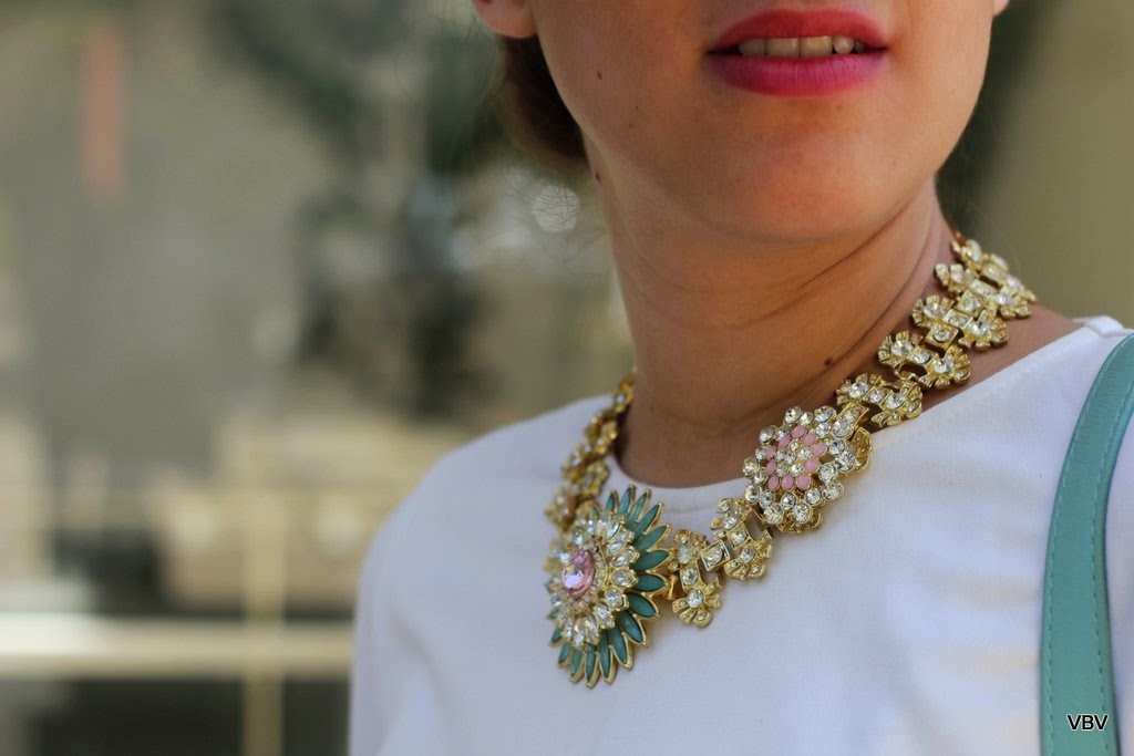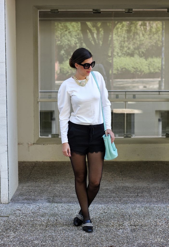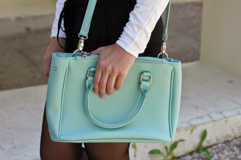 ¡Buenos días guapísimas! El binomio black and white es siempre una apuesta segura para crear un outfits sencillo y elegante, sobre todo para esos días en los que tienes que arreglarte en 5 minutos y no puedes pararte a pensar.Para darle un toque de color he escogido mi bolso de Misako y mi collar de Garbo que tiene piedras del mismo tono aguamarina. Espero que os guste chicas 🙂