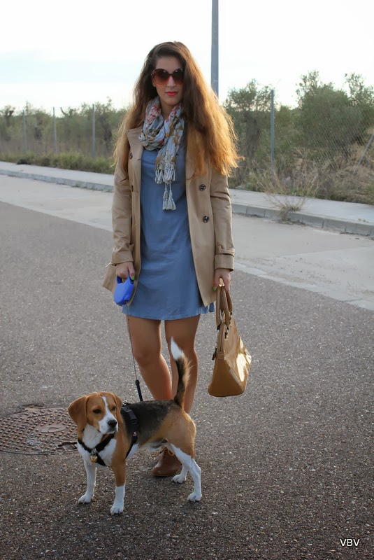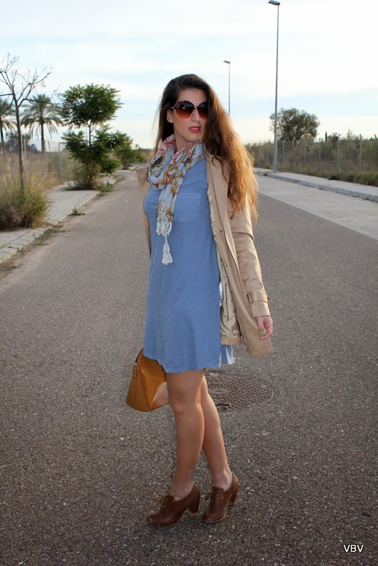 ¡Hola amores! Siento el retraso pero anoche no pude programar el post y por las mañanas tengo clases de inglés (mi tortura personal). Bueno aunque hace unos días os dije que ya no podíamos salir a la calle sin medias en Sevilla…pues lo retiro. Por las noches refresca pero al medio día hace calor y podemos seguir con ropa más fina, de hecho la gabardina me sobraba pero me gusta mucho la mezcla del azulino con el camel y quería enseñárosla.