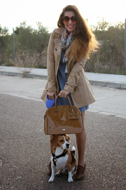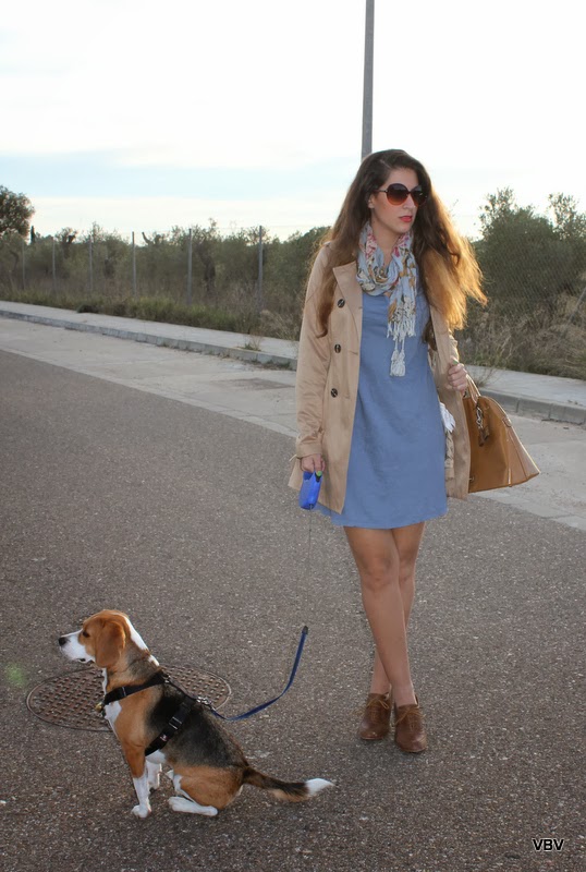 El vestido es de Oysho y si os digo la verdad quería hacerme unas fotos con él para eliminarlo de mi armario pero al ponérmelo me volvió a gustar ¿No os pasa eso con algunas prendas, le cogéis como manía pero al ponérosla vuelven a gustaros? Al final se queda en mi armario pero espero darle más uso. El bolso camel y los botines oxford creo que son la combinación perfecta para la gabardina, le da un aire muy british y más aun si en las fotos me acompaña Lemmy, es súper bueno y como veis se sienta y ni se mueve 🙂