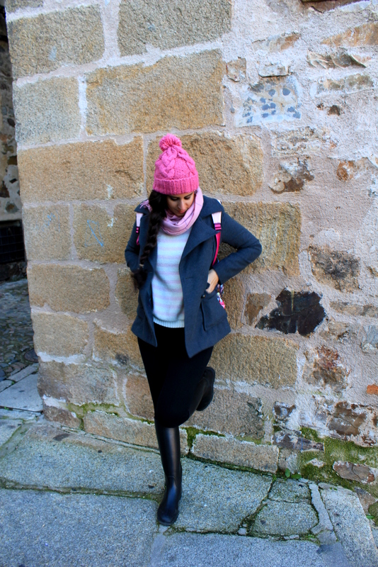 Con el frío que hacía la única forma de pasear era con un abrigo calentito así que elegí tonos rosas junto con el negro y gris como colores neutros.