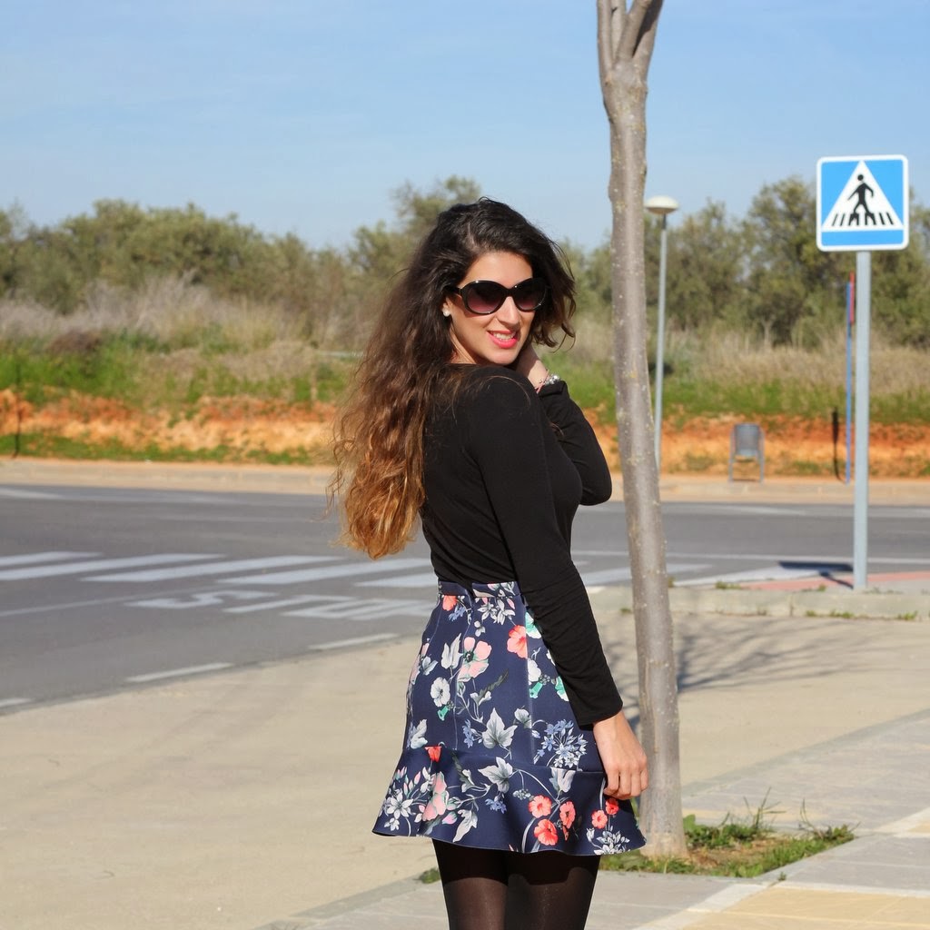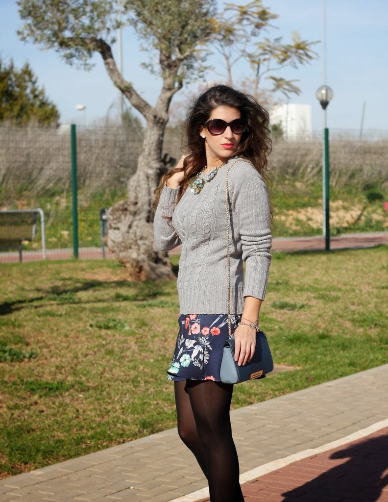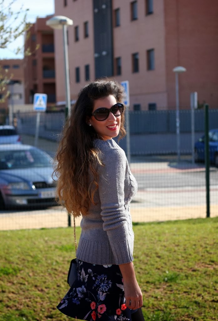 ¡Buenos días bombones! Menos mal que ya estamos a mitad de semana, en época de exámenes el tiempo se hace eterno…como en el fin de semana tuvimos unas temperaturas geniales me animé con mi falda de flores que tiene un estampado muy primaveral y me decidí a combinarla con un jersey gris y tacones negros pero me pasé con el jersey y a mitad de las fotos tuve que quitármelo o me moría de calor. Me dan muchísima envidia estas fotos porque ahora mismo está lloviendo y el fin de semana se presenta aun peor y encima es mi cumpleaños pero don´t worry lo celebraré igual.
