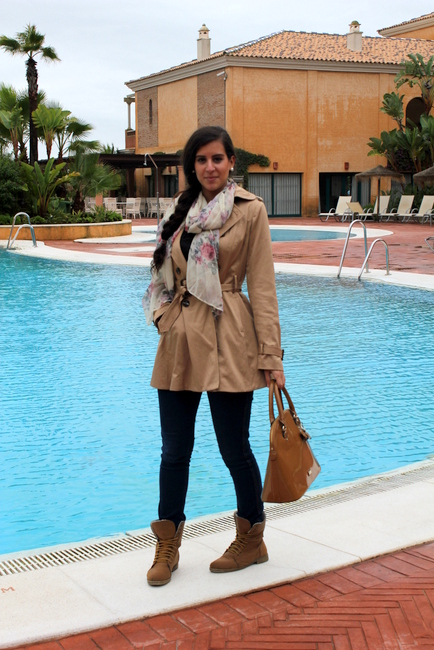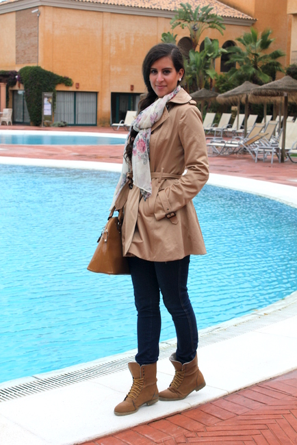 Hoy os traigo el último look que utilicé en Punta Umbría. Continuaba lloviendo así que me decidí por una gabardina, jeans y botas. Una combinación cómoda donde los detalles son los que aportan el toque personal.