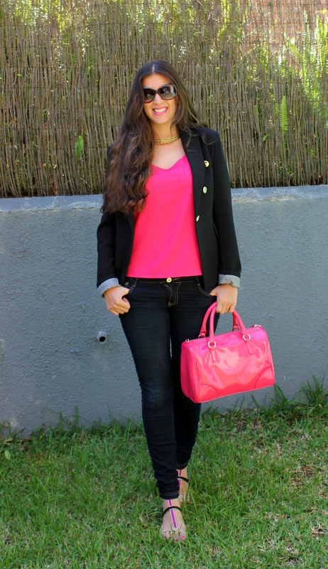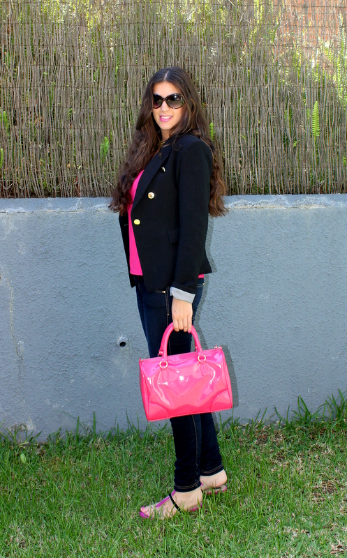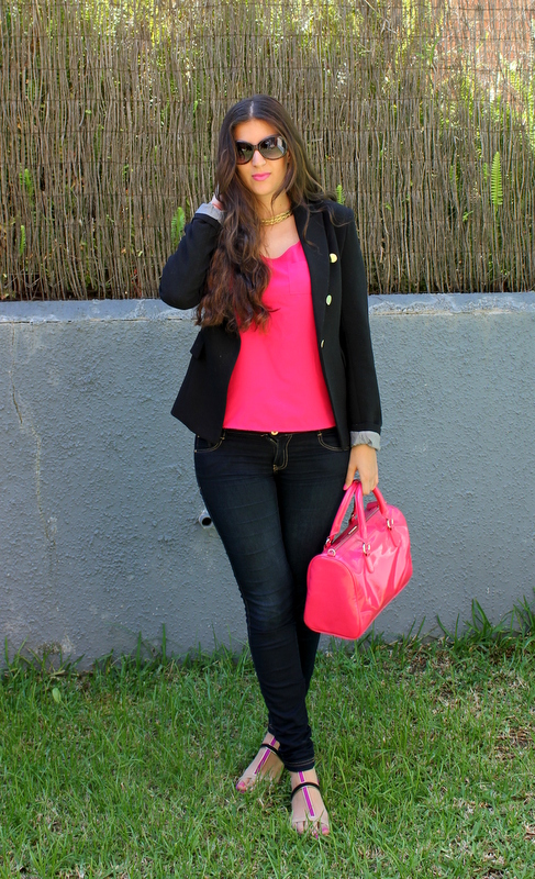 El outfits lo utilicé el domingo para ir a almorzar con mi familia y celebrar el día de la madre todos juntos. De nuevo repito con el color frambuesa como base del look y tonos oscuros como complemento. El top es muy sencillo pero llena de color cualquier conjunto y para el verano es super fresquito, además de hacer juego con mi bolso del mismo color y mis sandalias.