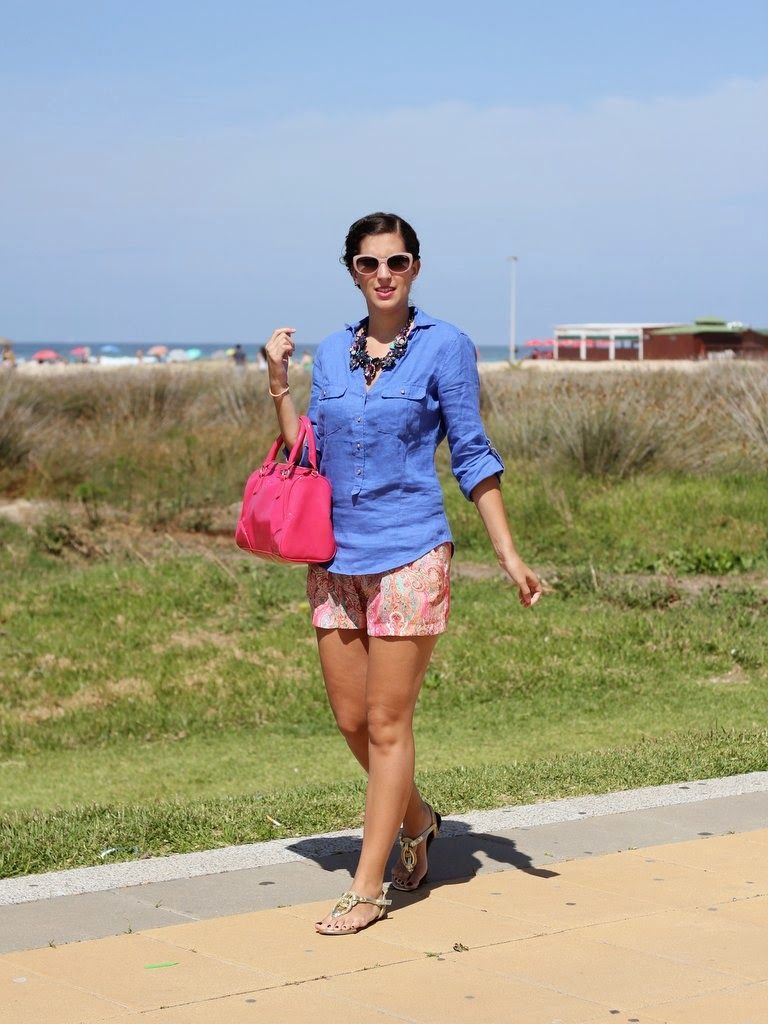 ¡Buenos días amores! Hace dos fines de semana me fui a Conil de la Frontera para celebrar el cumpleaños de mi padre y así desconectar de los exámenes un par de días, y lo único que me apetecía era utilizar colores alegres y llamativos ¡Que ganas tenía de un poco de sol! La camisa azul con los shorts de tonos rosas hacen una combinación perfecta y el collar junto con el bolso lo complementan aun más. Nos vemos el lunes con un post que me encanta, muchos besos.