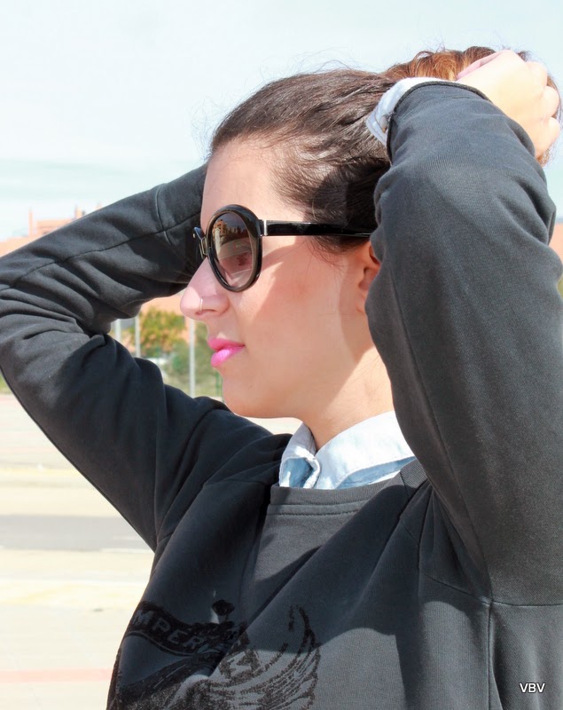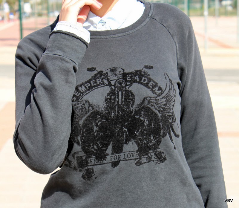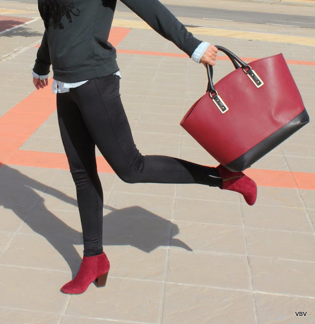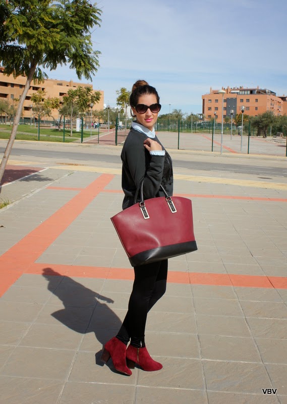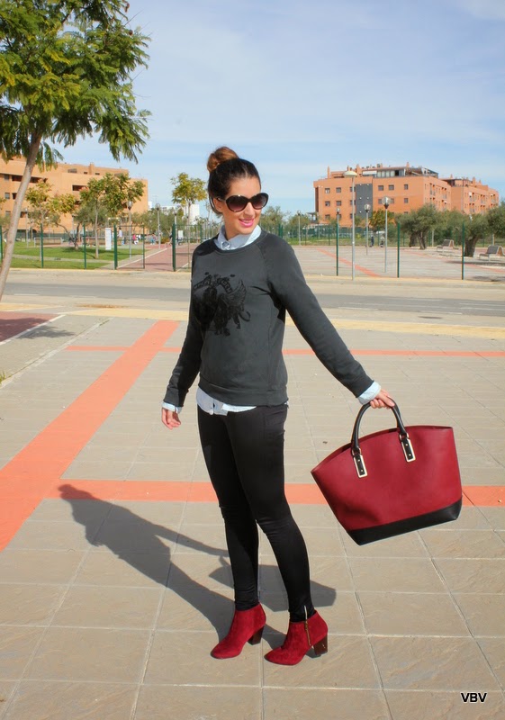 ¡Hola chicas! El frió ya se ha instaurado en Sevilla y cuando no tienes ganas de usar medias ¿Qué te queda? Pues leggins y pantalones, no es mi opción favorita pero cuando tienes que pasar todo el día en la universidad o de un lado para otro es lo más cómodo y abrigado. Y de ahí mi outfits de hoy, formado por básicos como son una sudadera, una camisa vaquera, unos leggins negros, botas y maxi- bolso, cosas que toda chica tiene en su armario. Haciendo el post me he dado cuenta que cada vez que escojo las botas burgundy o el bolso automáticamente los uno a ambos, como podéis ver aquí y aquí, dos look del invierno pasado y que hay que sumarle el que os enseño hoy. Tengo que buscar combinaciones por separados YA.