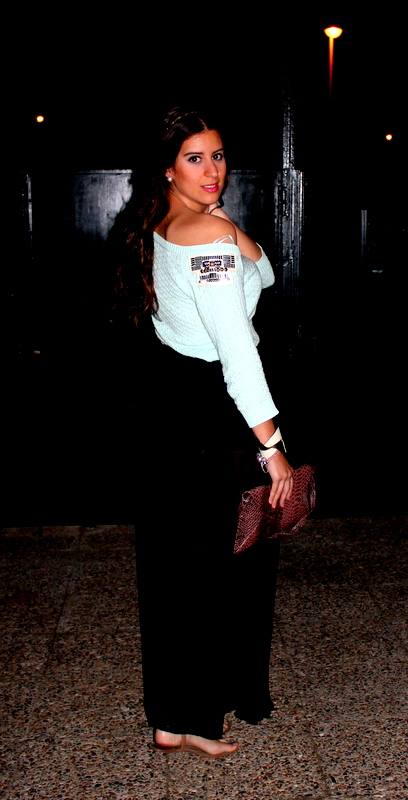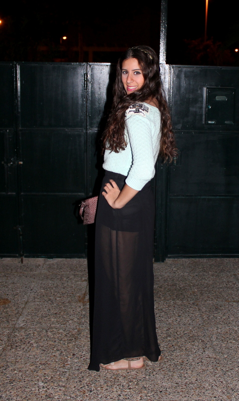 Tenía pensado otro outfits más veraniego (vestido) pero cuando atardeció empezaron a bajar las temperaturas, así que improvisé uno nuevo con mi última adquisición de Stradivarius, un chaleco finito para estos días de primavera en color mint y adornado con pedrería en los hombros, es ideal y además esta de oferta así que aprovechad. La falda larga me sirvió para abrigarme un poco las piernas y de nuevo mis sandalias marrones de piedras como complemento ideal además de mi clutch marrón.