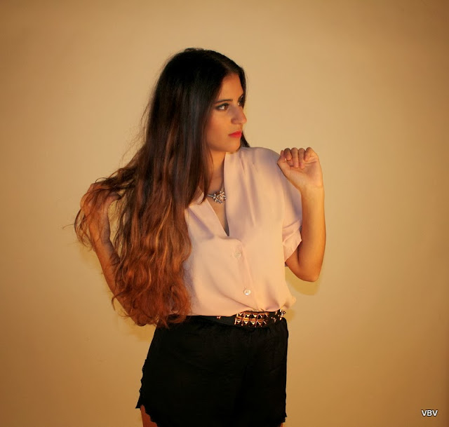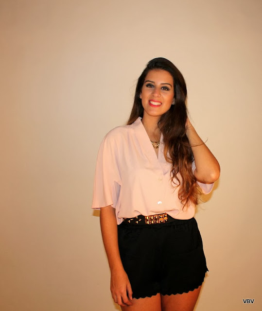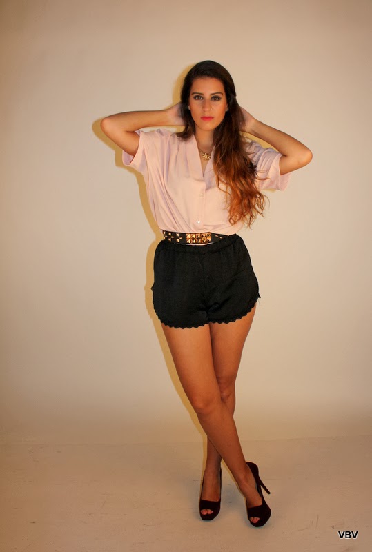 Pensando que outfits llevarme me acodé de una camisa Burberry que había rescatado del armario de mi madre hace unos días y decidí combinarla con unos shorts lenceros en negro y unos tacones burdeos. El toque chic se lo da este cinturón con tachuelas doradas que me compré la última vez que estuve en Primark, rompiendo con totalmente con el aire naif del conjunto. Creo que este será uno de mis outfits para las cenas de Navidad, ya os contaré.