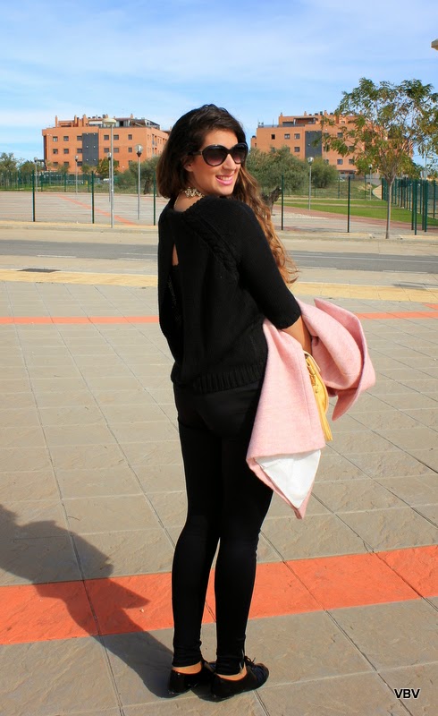 En cuanto al resto del look, como quería que no le restará protagonismo, elegí un total black muy simple formado por leggins y mi chaleco de Zara que tiene una abertura en la espalda muy bonita además de mis zapatos oxford perfectos para pasar un domingo relajado.