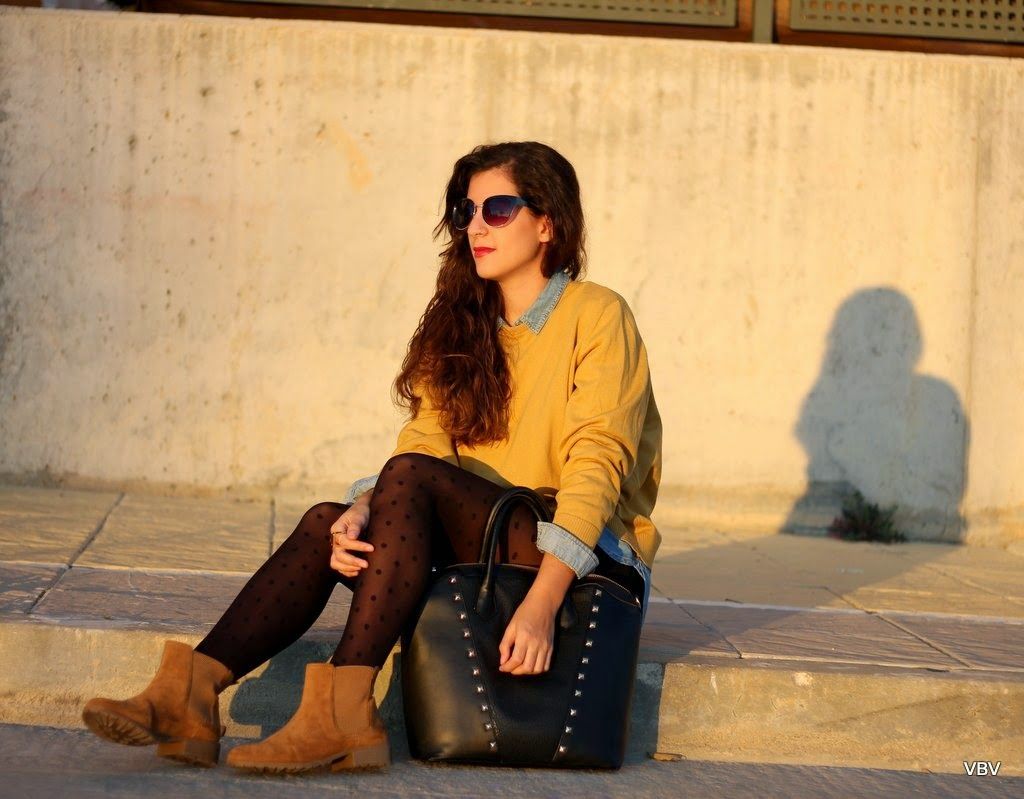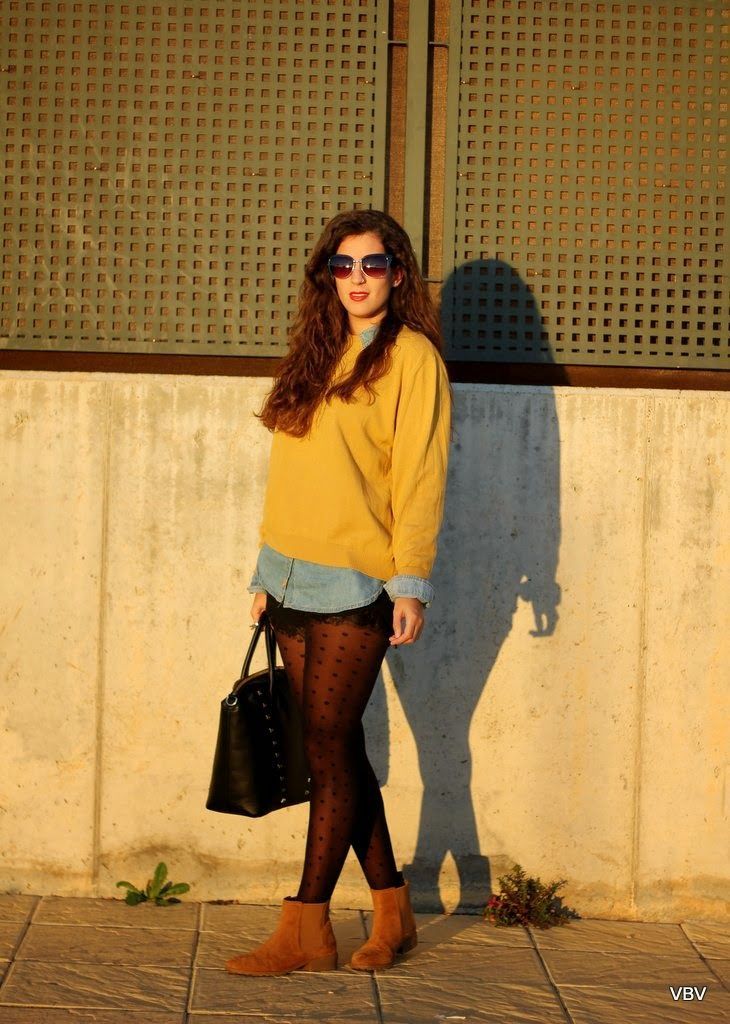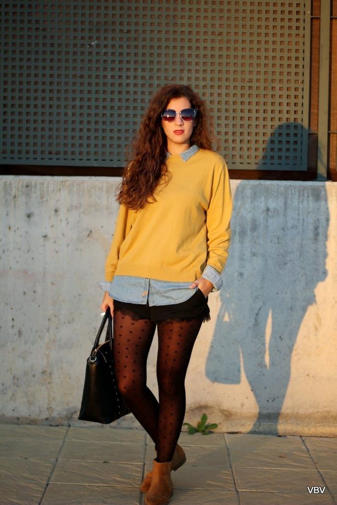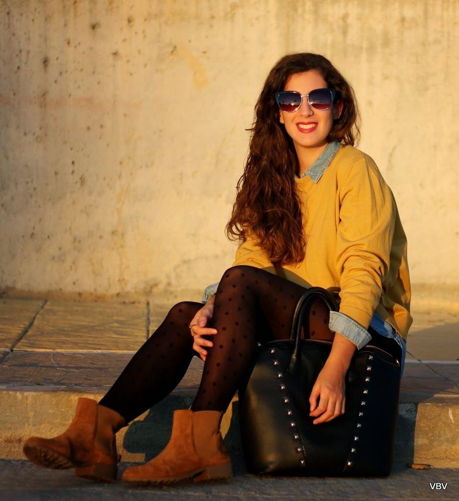 ¡Hola a tod@s! Ya estoy de vuelta después de una semana desconectada de todo en Madrid. En Sevilla, ya hemos dejado atrás el otoño y hace un frío tremendo por las noches. Este outfits es el que escogí ayer para salir a cenar con mis amigas, quería ir arreglada pero con un toque informal que me permitiese estar cómoda y lo mejor para eso son estas botas en color camel. El resto del look es una camisa vaquera, unos shorts negros y un jersey de mi madre que le viene genial a los zapatos, como hacía tanto frío le añadí una chupa de cuero negra. Espero que os guste y nos vemos el miércoles, un súper abrazo.