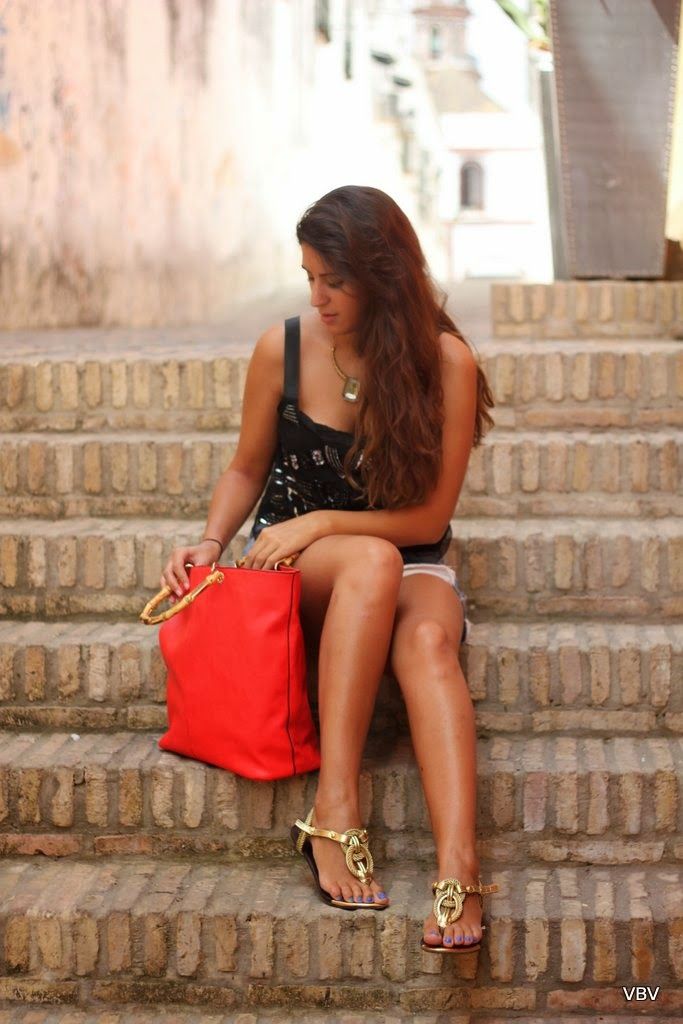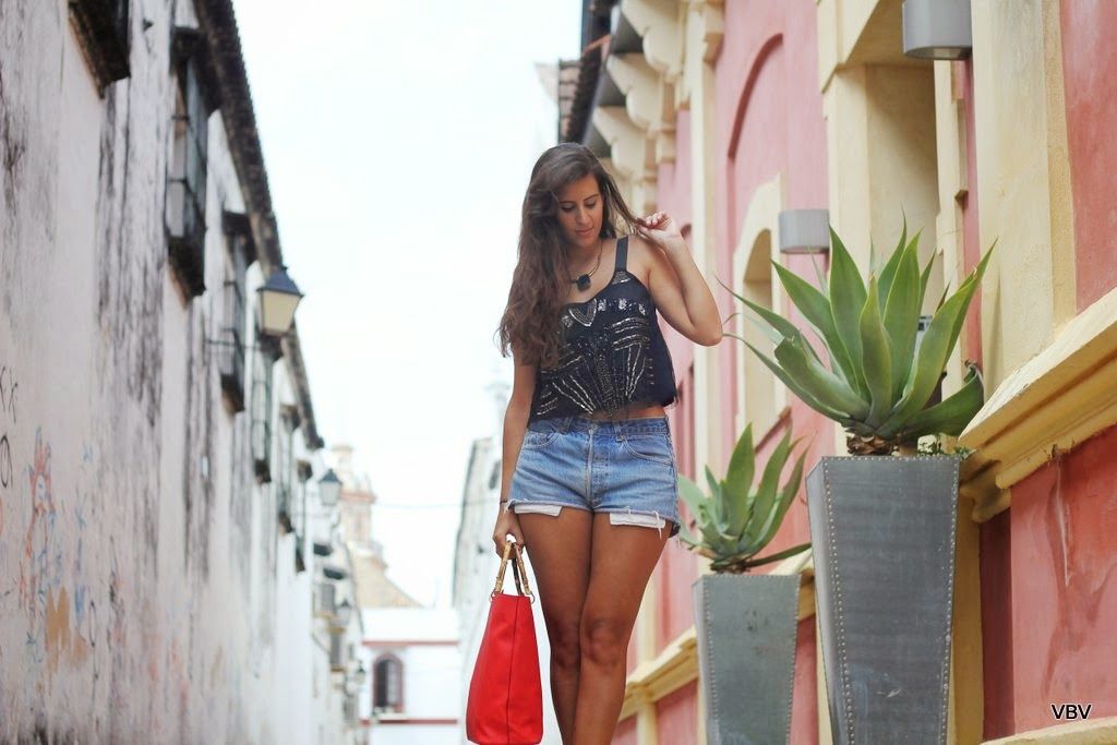 ¡Buenos días! Durante muchos años el color rojo ha estado fuera de mi armario, pensaba que llamaba mucho la atención, que cansaba y que me resultaría muy difícil combinar prendas de ese tono porque la mayoría de mi armario es rosa, pero desde este invierno he ido incluyéndolo en mi vida y ya por fin me he hecho con un bolso. Me lleve una sorpresa enorme cuando abrí mi nueva compra de Parfois en casa y me di cuenta que dentro del bolso grande hay otro más pequeño que se puede utilizar de bandolera o como neceser, un 2×1 en toda regla. El resto del outfits son prendas sencillas para salir a dar un paseo por el centro de Sanlúcar de Barrameda: un crop top negro, mis shorts Levis vintage, que veréis mucho por aquí y mis sandalias doradas que últimamente no me las quito (hay que economizar el espacio de la maleta). Nos vemos mañana amores con mis adquisiciones rebajiles.
