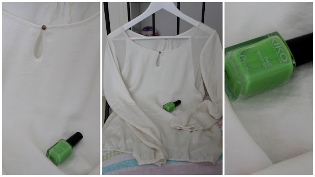 Y para terminar, una blusa blanca, de nuevo de Bershka y un pintauñas en verde manzana de Kiko.