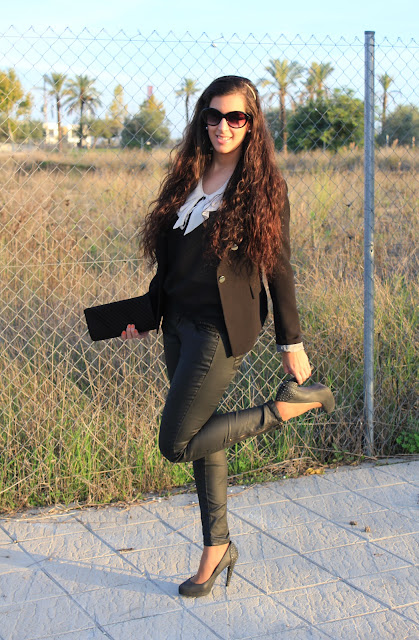 ¡Buenos días! Hoy os muestro un outfits casi totalmente black. La chaqueta es de Mango y le voy a dar mucho uso este invierno sobre todo para salir por la noche y no utilizar ningún abrigo y la blusa del Primark de Londres, una pena que este tan lejos porque sus tiendas son enormes y hay una variedad de ropa tremenda. Para terminar el look unos pitillos negros y tacones con tachuelas.