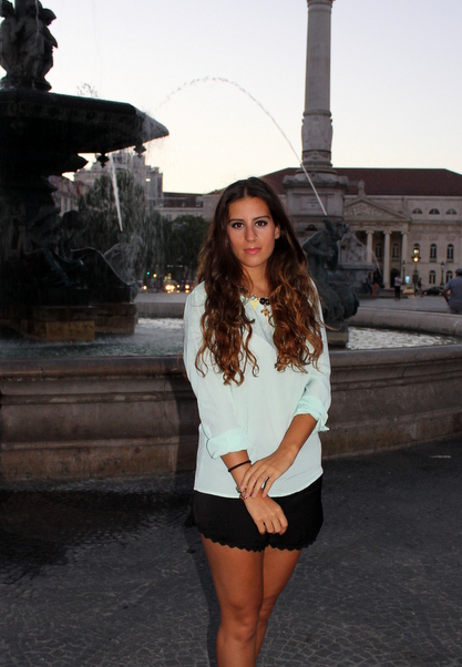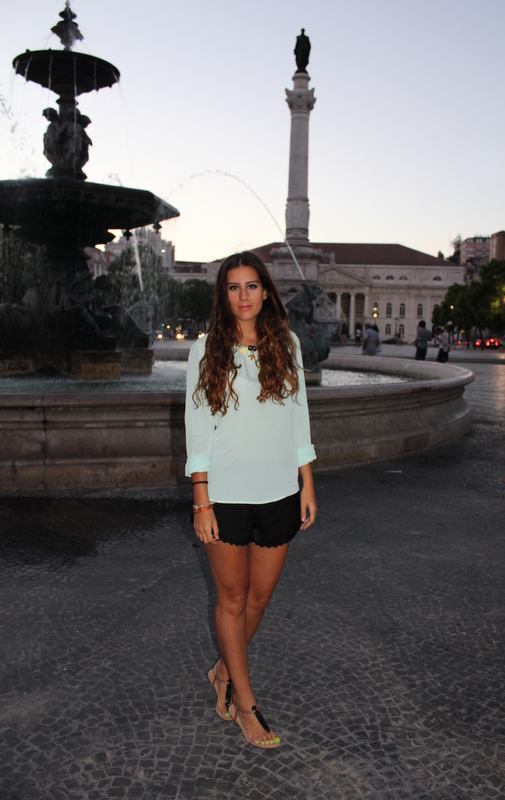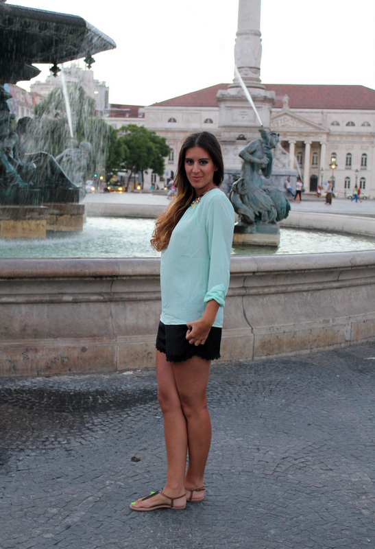 Este outfits es la primera noche, aunque miré el tiempo y ponía que la temperatura era de unos 30º estaba muerta de frío. La blusa la compré el fin de semana anterior en el Lefties de Jerez y se ha convertido en una de mis favoritas, llevaba mucho tiempo buscando una pieza de este color y que fuera muy simple para poder combinarla de distintas formas. Esta vez me decidí por el negro para los shorts lenceros y las sandalias pero pronto os enseñaré otros outfits con ella.