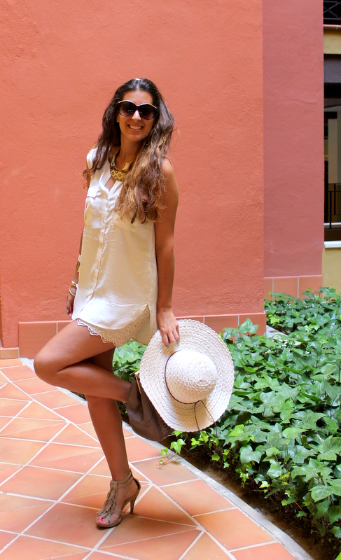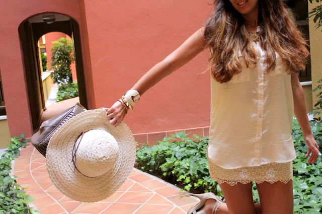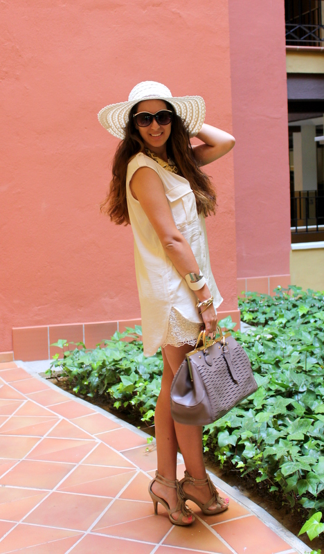 Yo lo utilicé para dar una vuelta por la mañana por Ayamonte, un pueblo de Huelva que está muy cerca de Isla Canela. Desde que me hice las mechas californianas tengo mucho cuidado con mi pelo porque me da miedo que se me seque y por eso, siempre que voy a estar un buen rato expuesta al sol utilizo algún sombrero para protegerlo y además en esta ocasión el color combina a la perfección 🙂